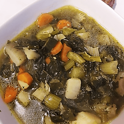 Minestrone with broccoli leaves…with grated cheese and a drizzle of olive oil
