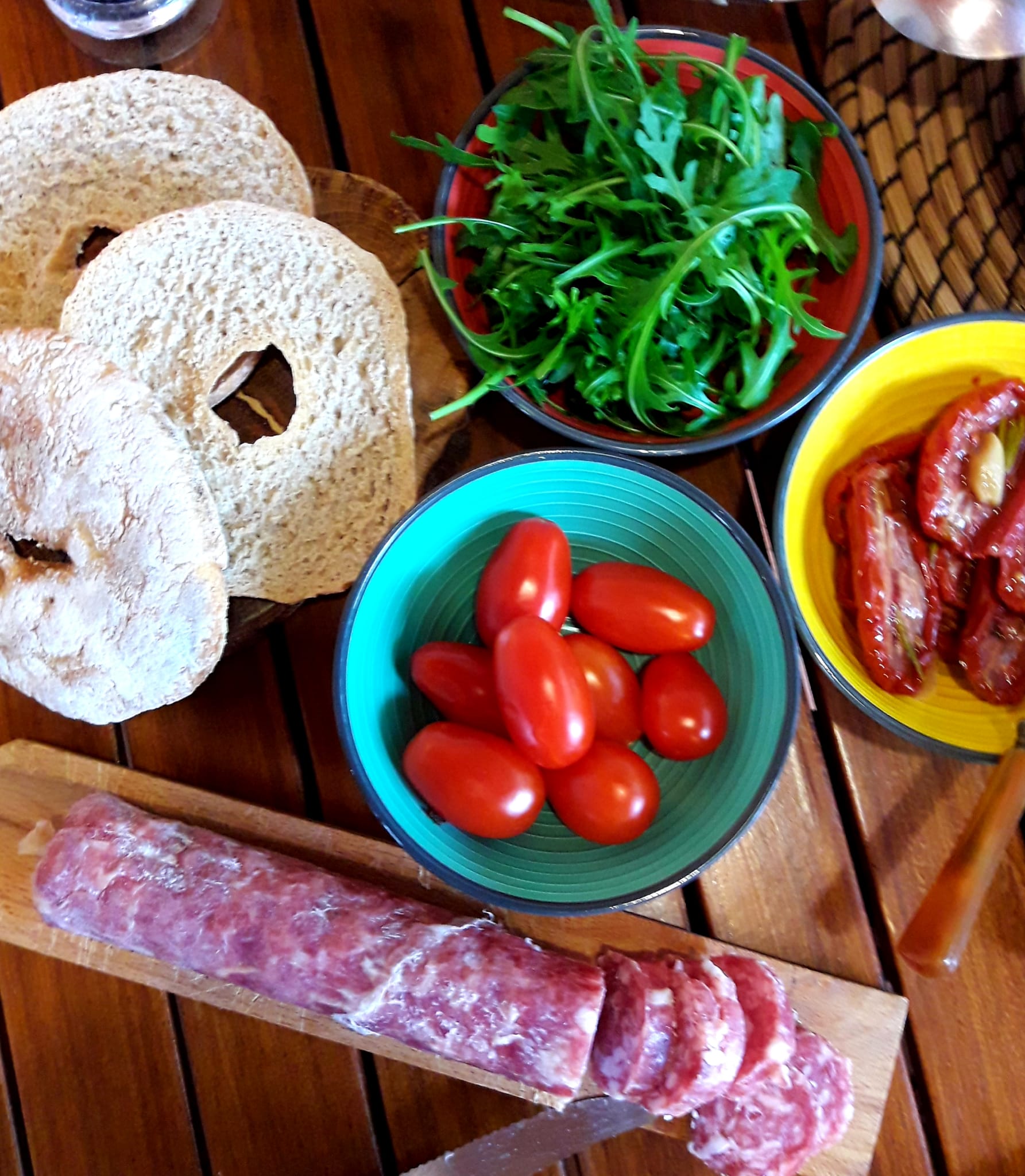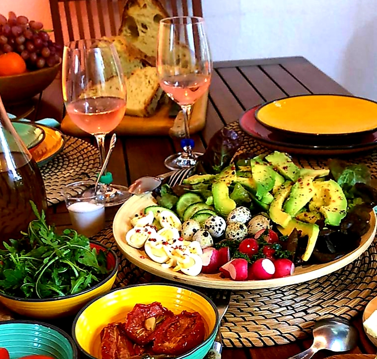 Everybody in Puglia loves having an ‘aperitivo’. Traditionally it is a glass of something bubbly, usually prosecco, or a non-alcoholic cocktail. Yesterday I served perfectly chilled rosato wine from the Salento region of Puglia….made from handpicked ‘negroamaro’ grapes, it has a delicate pale pink colour and appears to be filled with light …it is divine! Aperitivo can be a simple pre-lunch drink with a few olives and taralli or it can be ‘rinforzato’, reinforced….sometimes to the point of becoming an aperilunch. Yesterday in my house it became just that 🙂