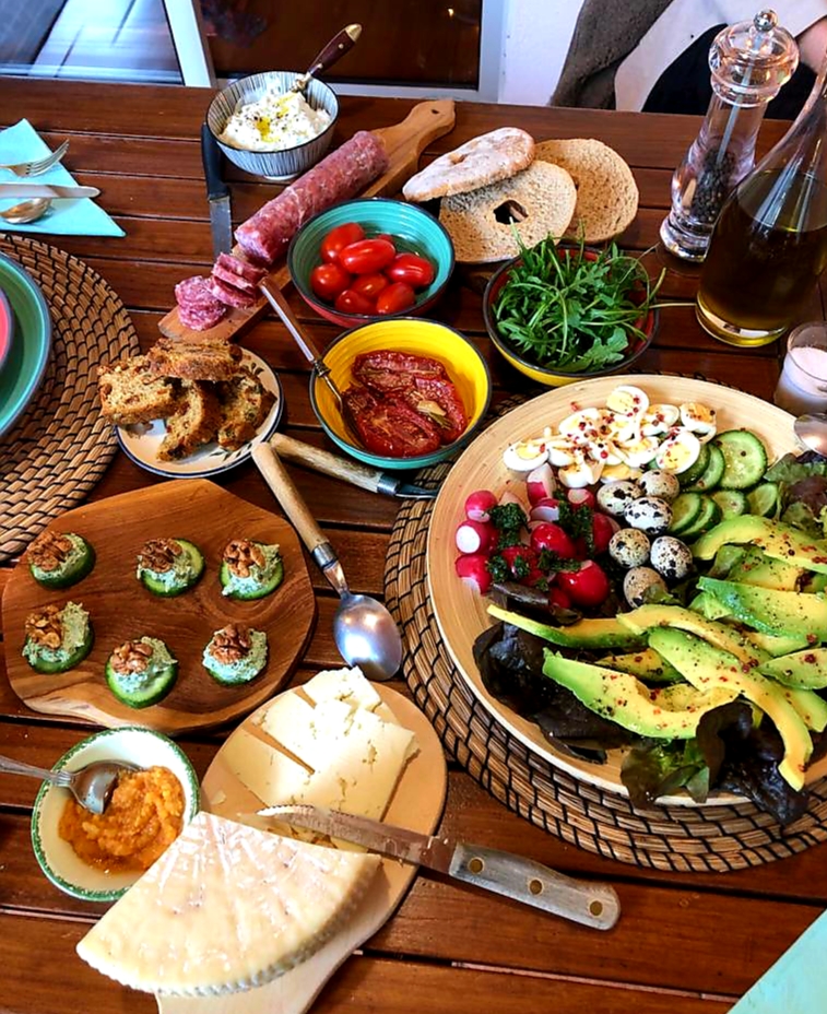 I served hand-made pecorino cheese from Basilicato, Strolghino salami, semi-dried tomatoes (I dried the tomatoes in my garden back in August), little creamy cheesy cucumber bites and other bits and pieces.