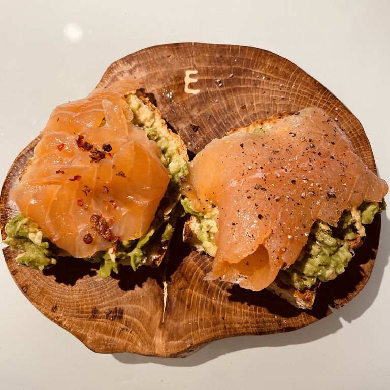 Toast a slice of soda bread and top it with mashed avocado and smoked salmon. Season with crushed black or pink pepper and a squeeze of lemon juice.