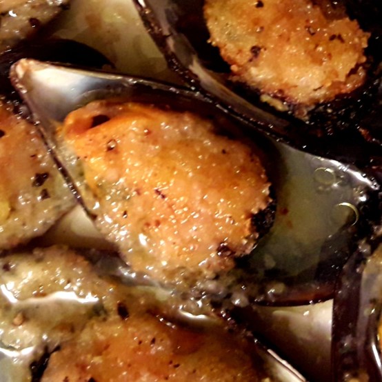 1 kg mussels on the half shell 1 or 2 cloves garlic 1 fresh lemon fine breadcrumbs freshly ground black pepper extra virgin olive oil Place the mussels in an oven dish and squeeze lemon juice over each one. Crush the garlic and distribute it carefully over the mussels. Make sure you get some garlicContinue reading “Baked Mussels”